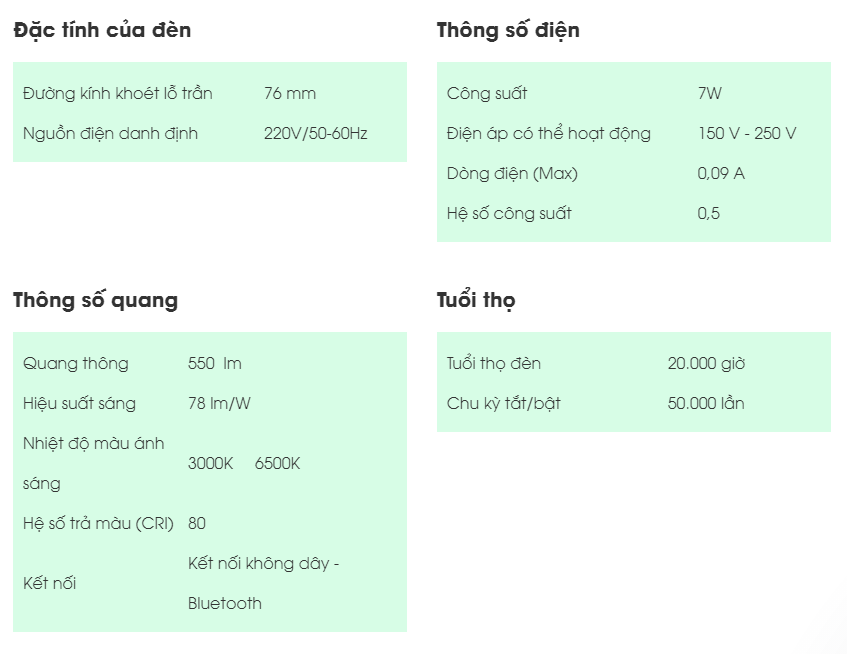 Đèn LED âm trần Downlight COB 76/7W (Điều khiển bằng Bluetooth)